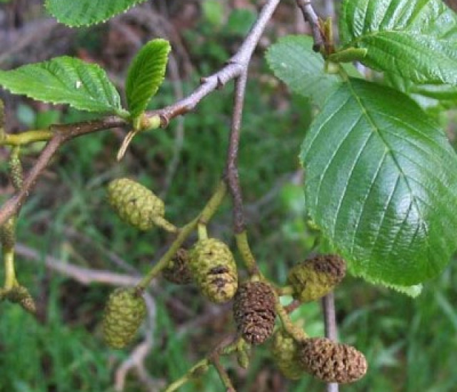 White alder is a fast-growing deciduous tree. The fragrant, light yellow-green leaves have very small, soft hairs on the underside. On young trees, the bark is pale gray and smooth becoming dark and scaly as the tree ages. The flowers are catkins -- with the female catkins resembling very small conifer cones. The fruit is a samara (sometimes called a helicopter or wingnut) that contains a small nut.