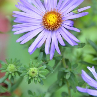 Aromatic aster is a native perennial wildflower that grows from 1–3 feet tall. The aster’s rigid stems branch out from the base, giving it a bushy appearance. The name derives from the balsam-like scent when stems are crushed or broken.