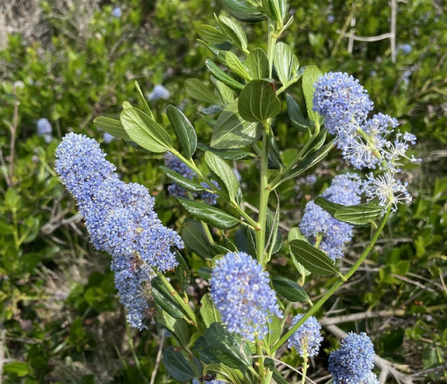 Blueblossom is an evergreen shrub with blue to white showy flower clusters, native to the California coastal areas.
