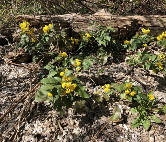 Creeping mahonia is adapted to habitats that have regular wildfires. It regenerates after a fire when dormant buds sprout from the surface of the underground rhizomes.